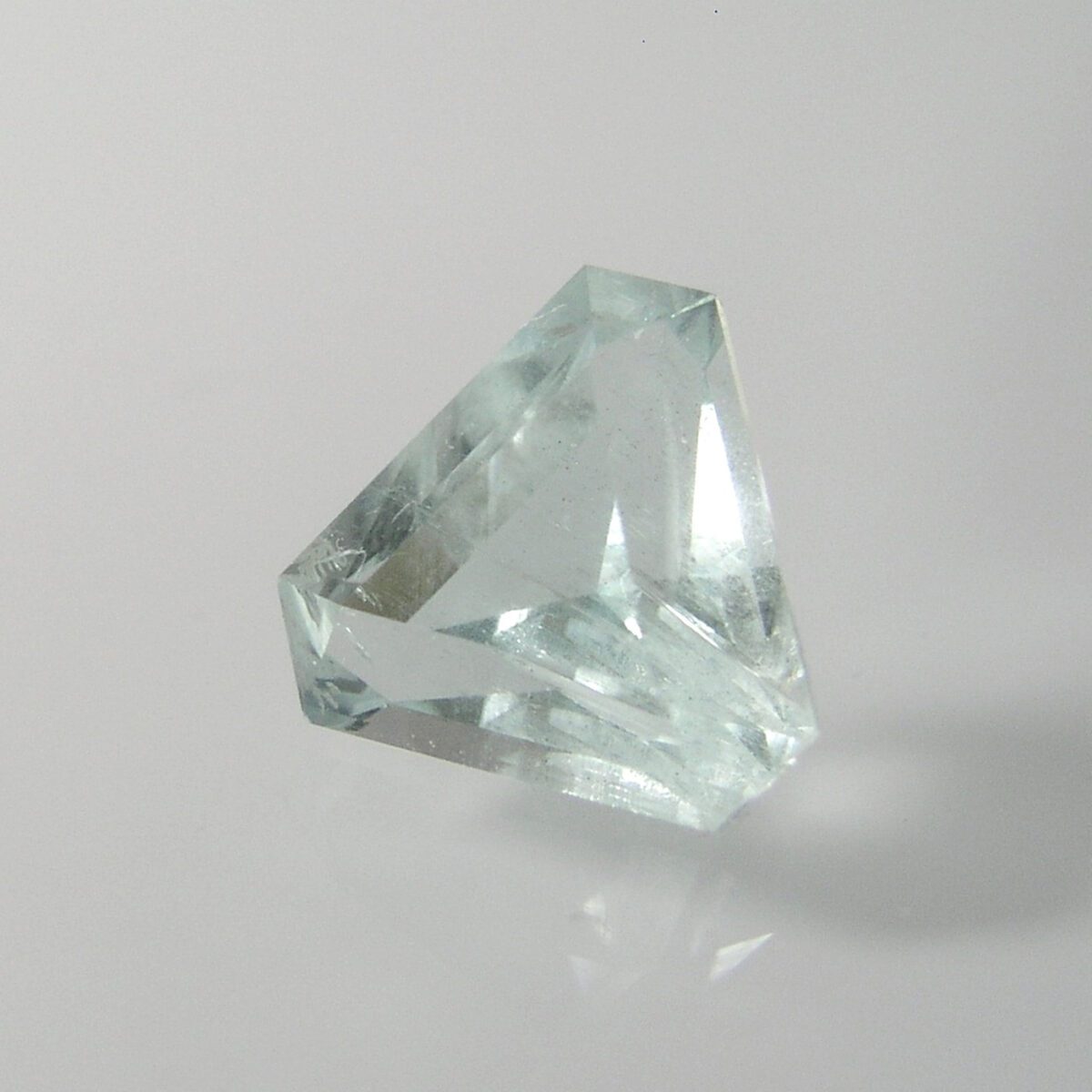Pěkně a netradičně fasetovaný, zcela přírodní – neupravovaný beryl akvamarín vysoké kvality se světlým, avšak velmi příjemným odstínem zeleno-modré. Tento jemný tón barvy působí svěže a elegantně, přičemž si zachovává bohatou jiskru a výbornou brilanci. Velmi dobrá průhlednost kamene umožňuje světlu volně procházet, což zvýrazňuje jeho krásu a činí jej ideálním kandidátem pro originální šperkařské kousky.
