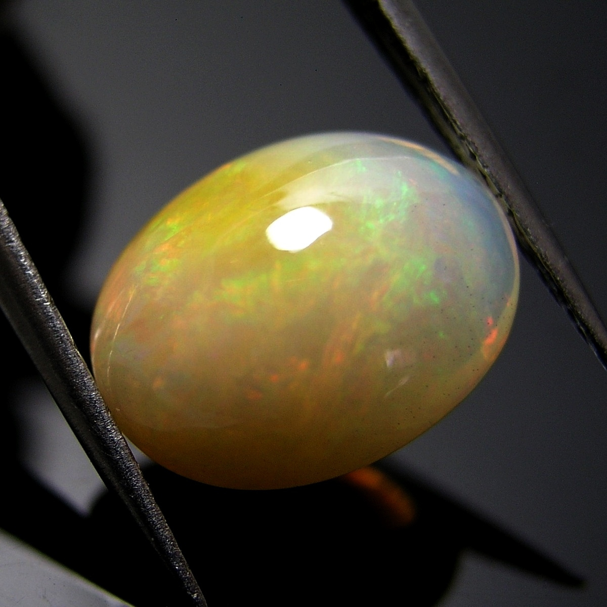 Etiopské drahé opály jsou v posledních desetiletích ceněny pro svou kvalitu a rozmanitost barevné hry, která může vynikat i při běžném denním nošení. Tento konkrétní kus se svým lehkým základním tónem a bohatou paletou ohnivých odlesků představuje atraktivní materiál pro výrobu luxusního šperku. Díky své velikosti i sytosti barev se skvěle hodí například do prstenu, kde bude poutat pozornost, nebo do elegantního přívěsku, který vynikne při každém pohybu.