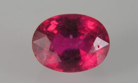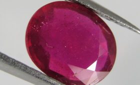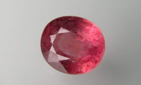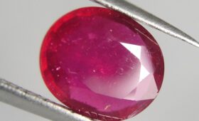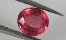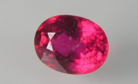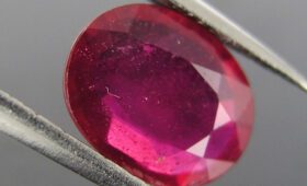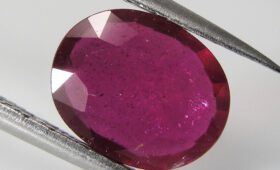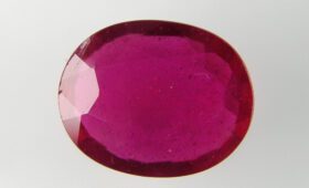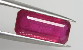 Fasetovaný -broušený, přírodní rubín s atraktívní, sytou barvou, velmi dobrou čistotou a pěknou bohatou jiskrou.