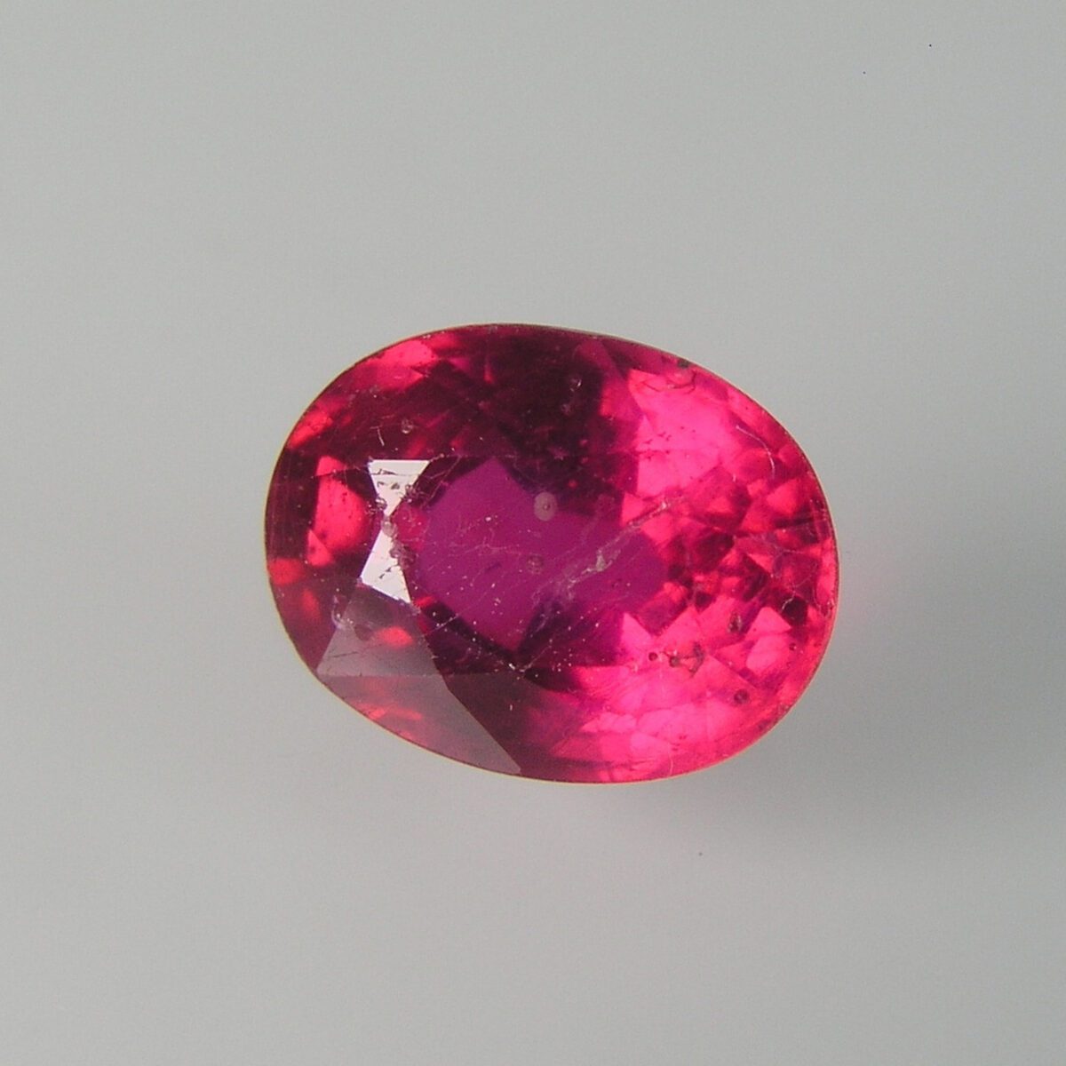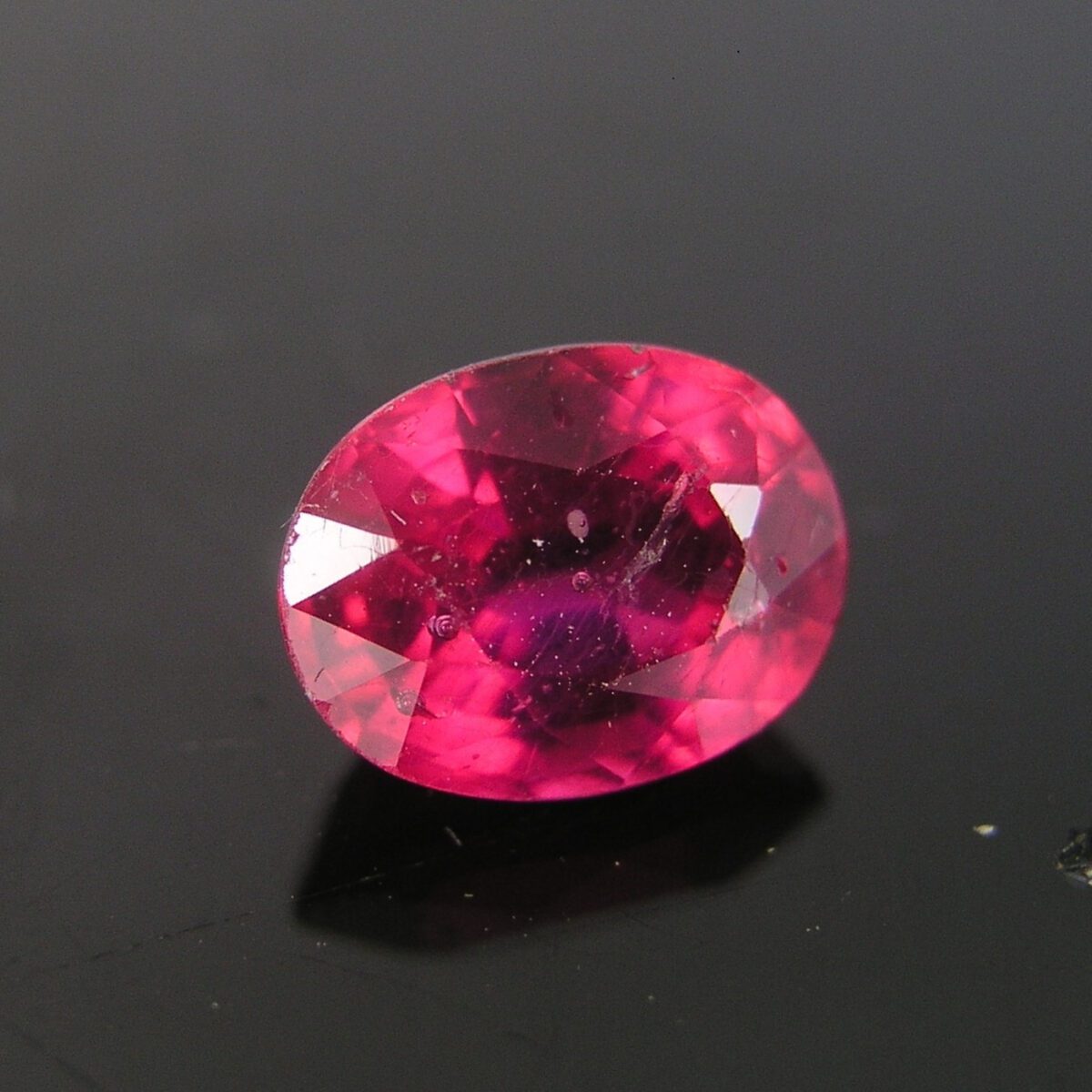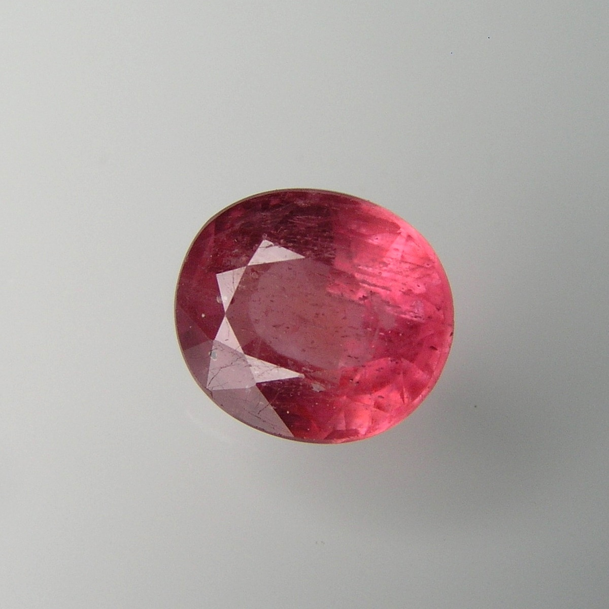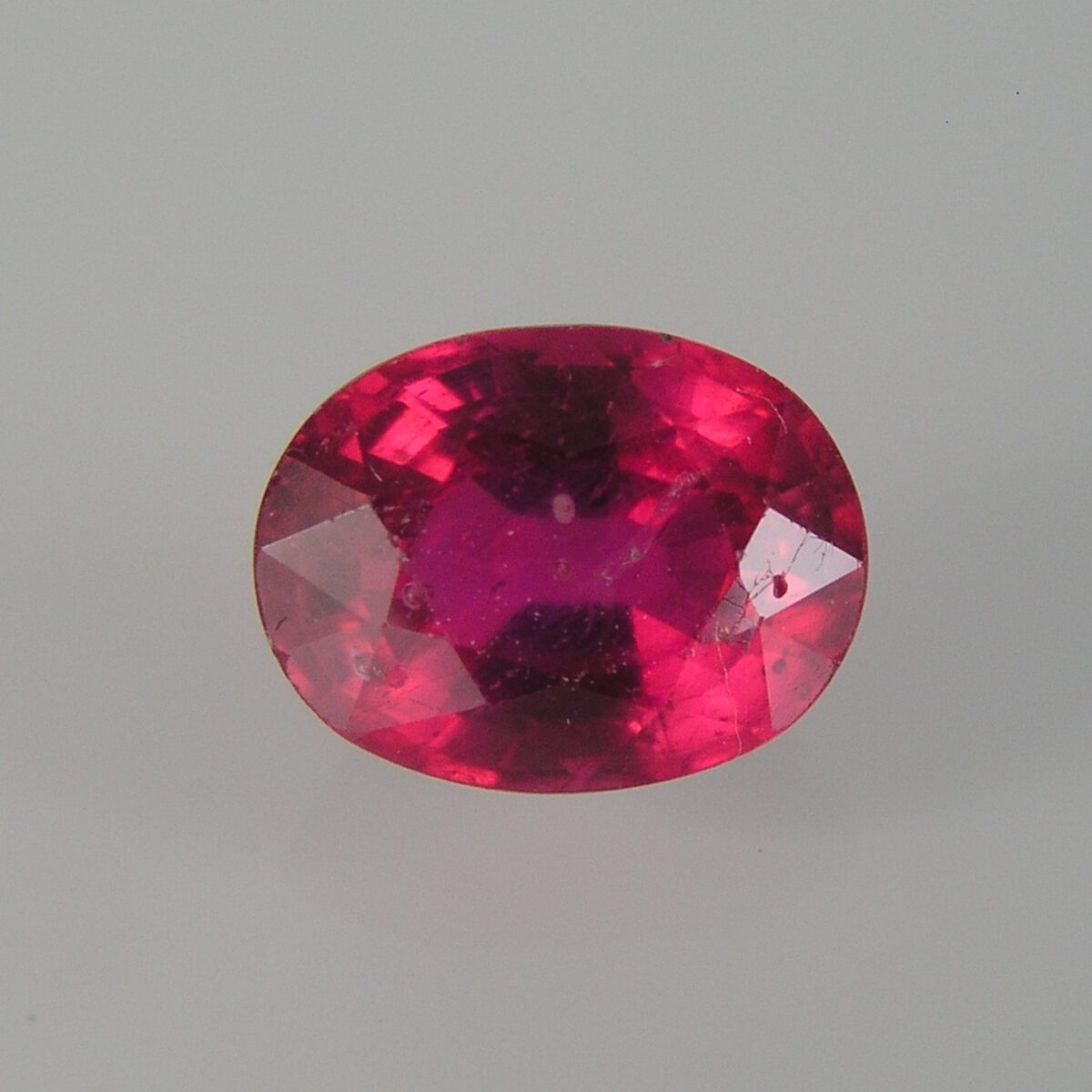 Fasetovaný -broušený, přírodní rubín s atraktívní, sytou barvou, velmi dobrou čistotou a pěknou bohatou jiskrou.