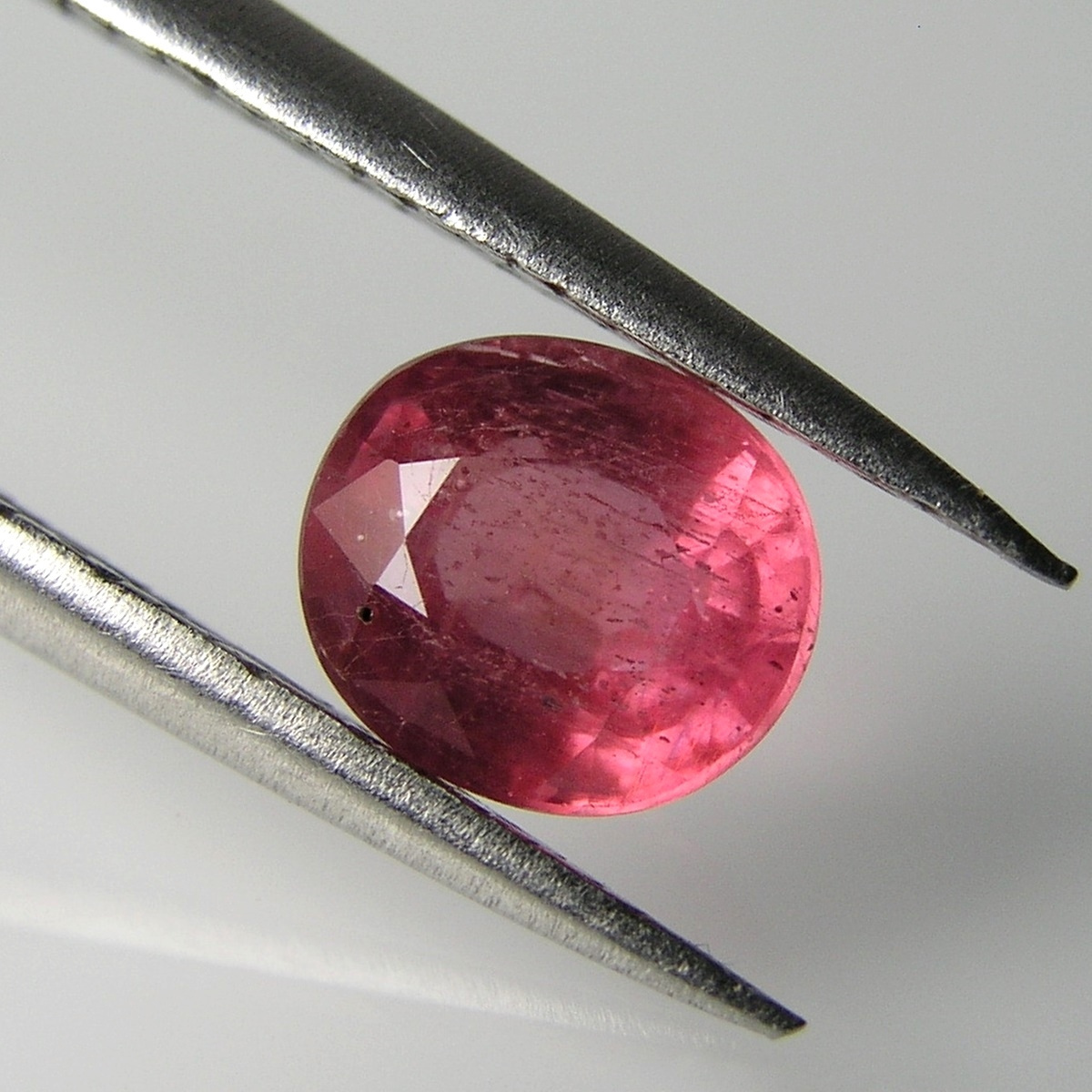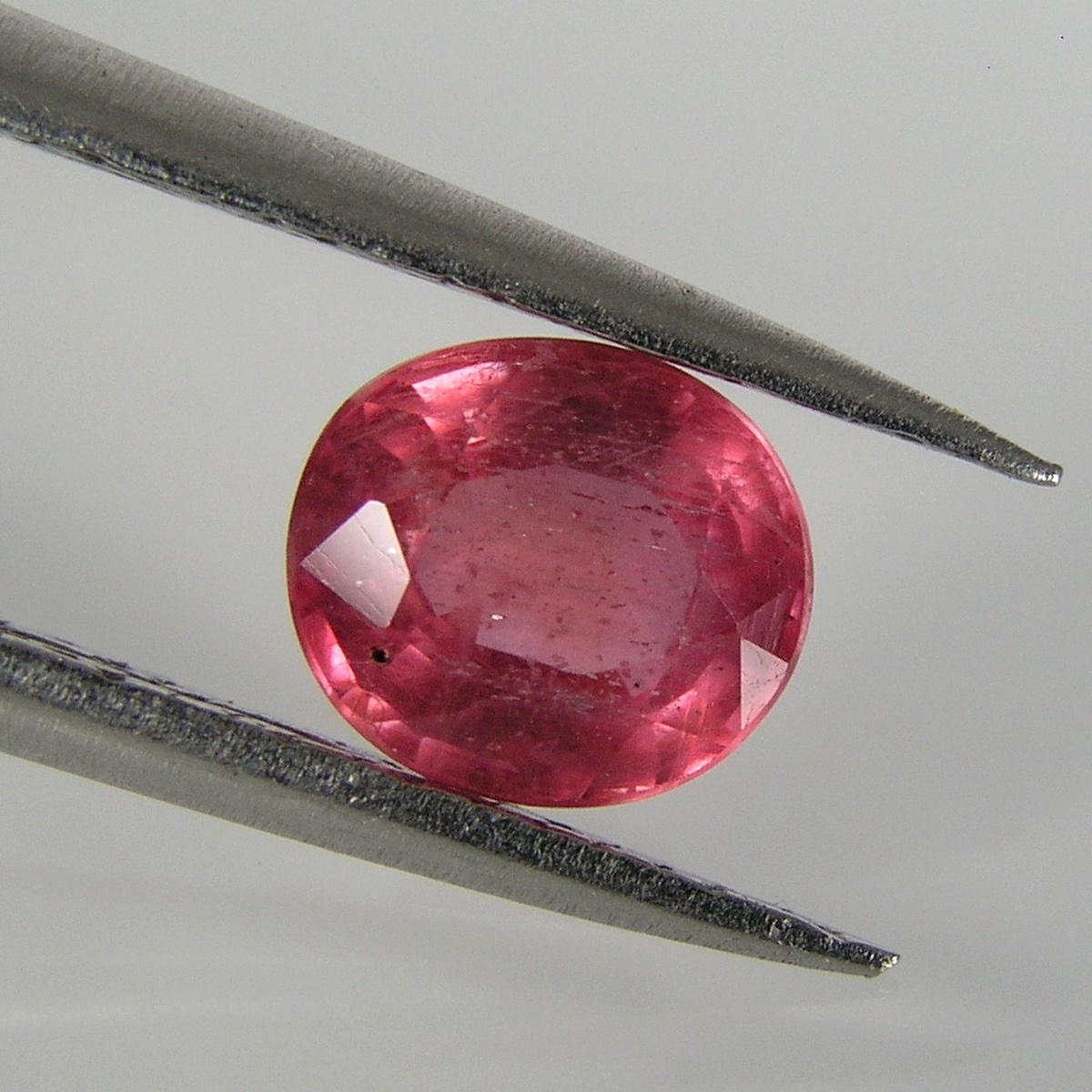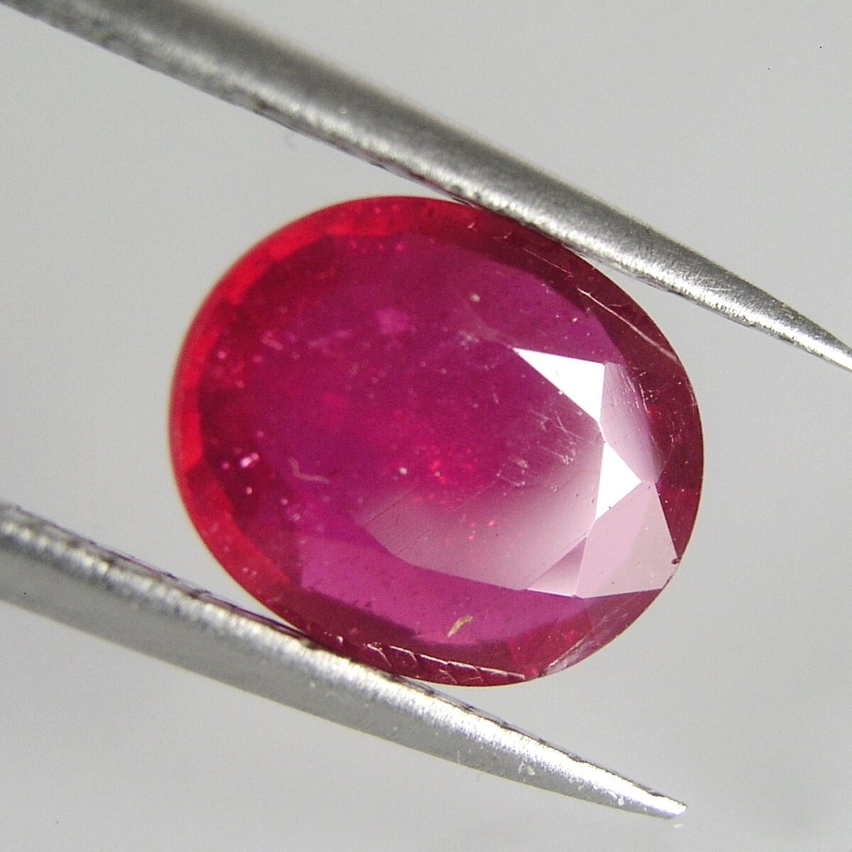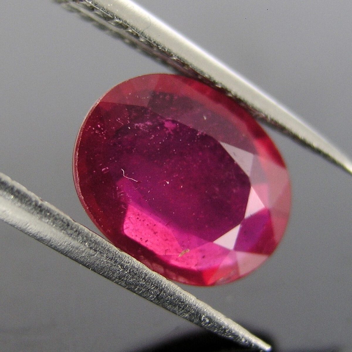 Fasetovaný -broušený, přírodní rubín s atraktívní, sytou barvou, velmi dobrou čistotou a pěknou bohatou jiskrou.